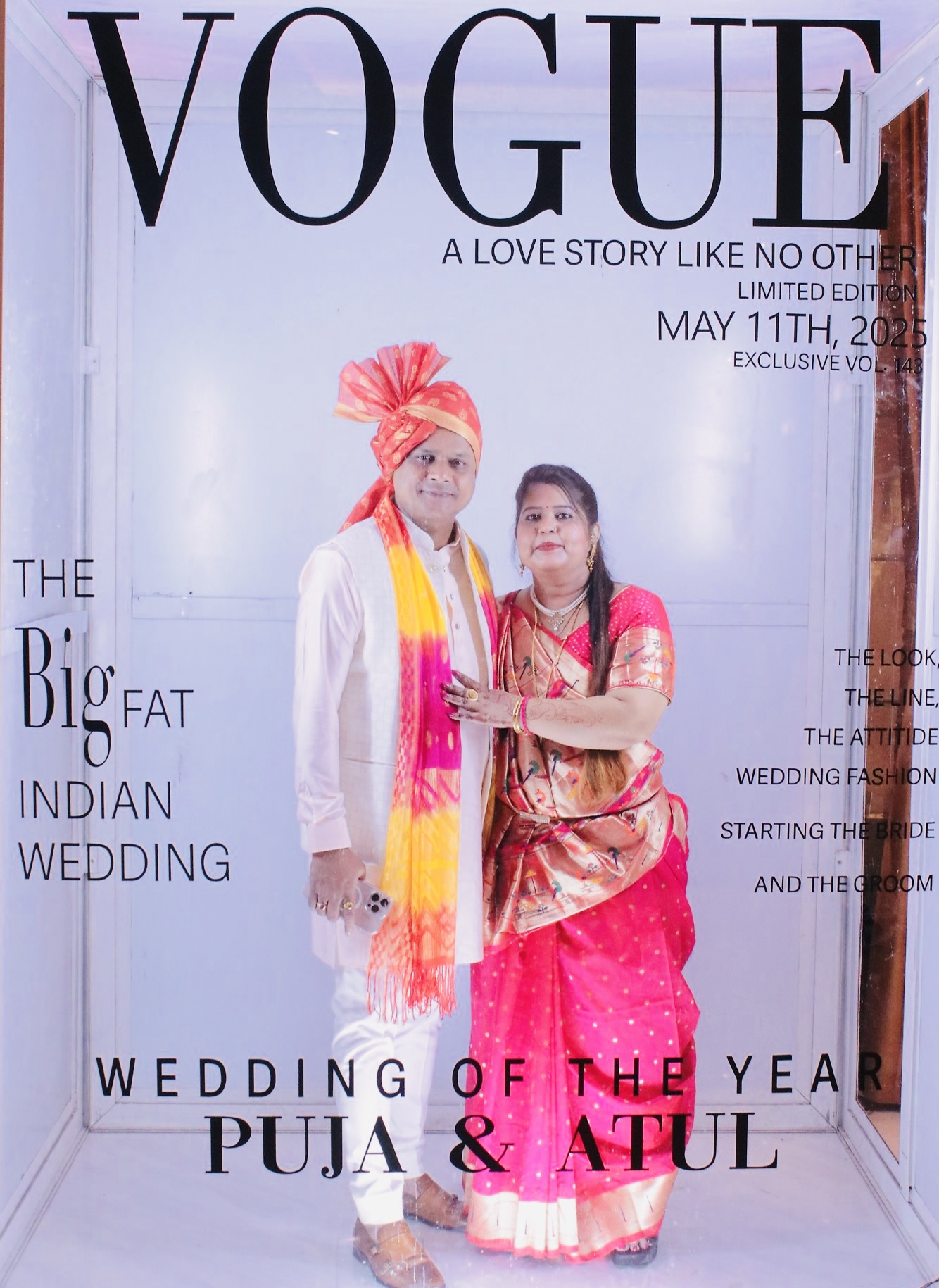 A magazine-themed photo booth is an event installation where guests can pose as if they are on the cover of a magazine. It’s a fun, Instagrammable experience that combines photography with branding and visual storytelling.