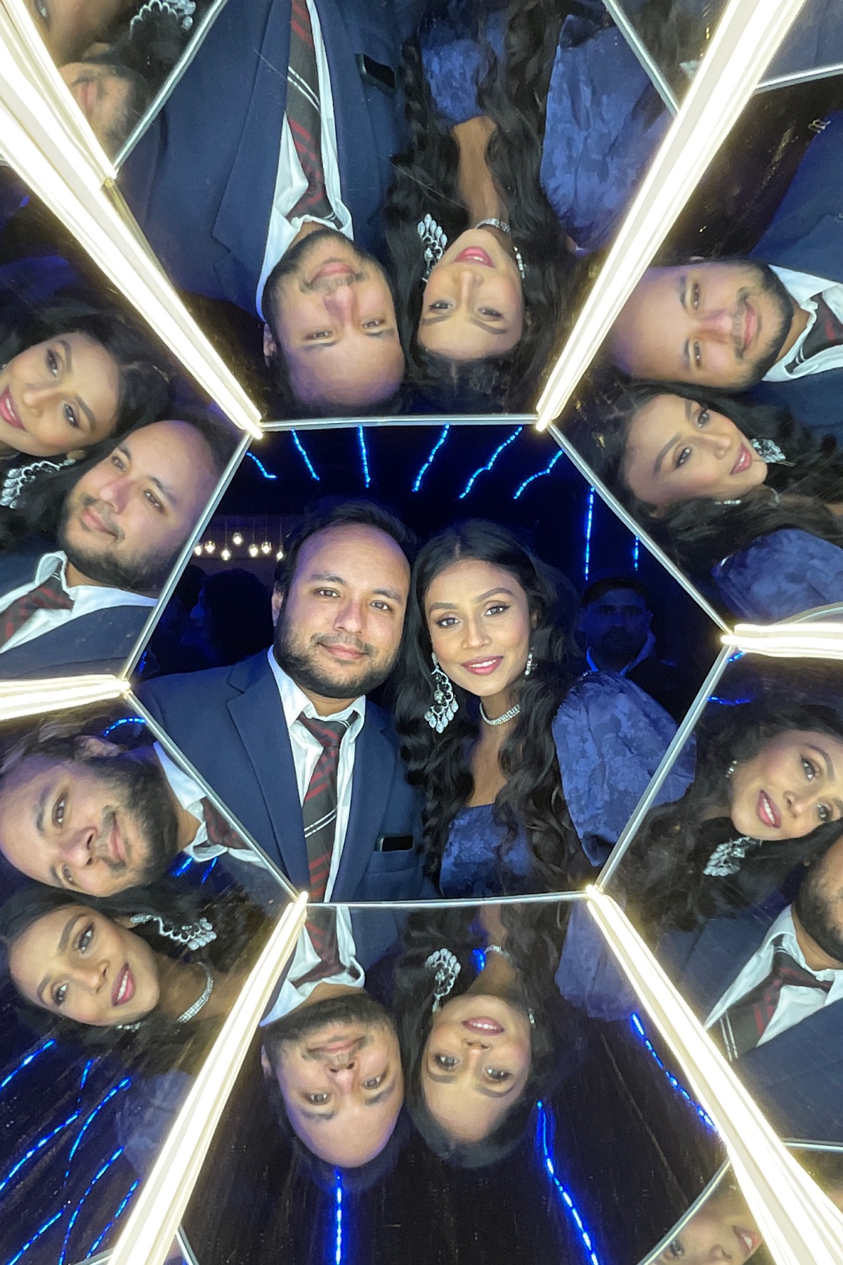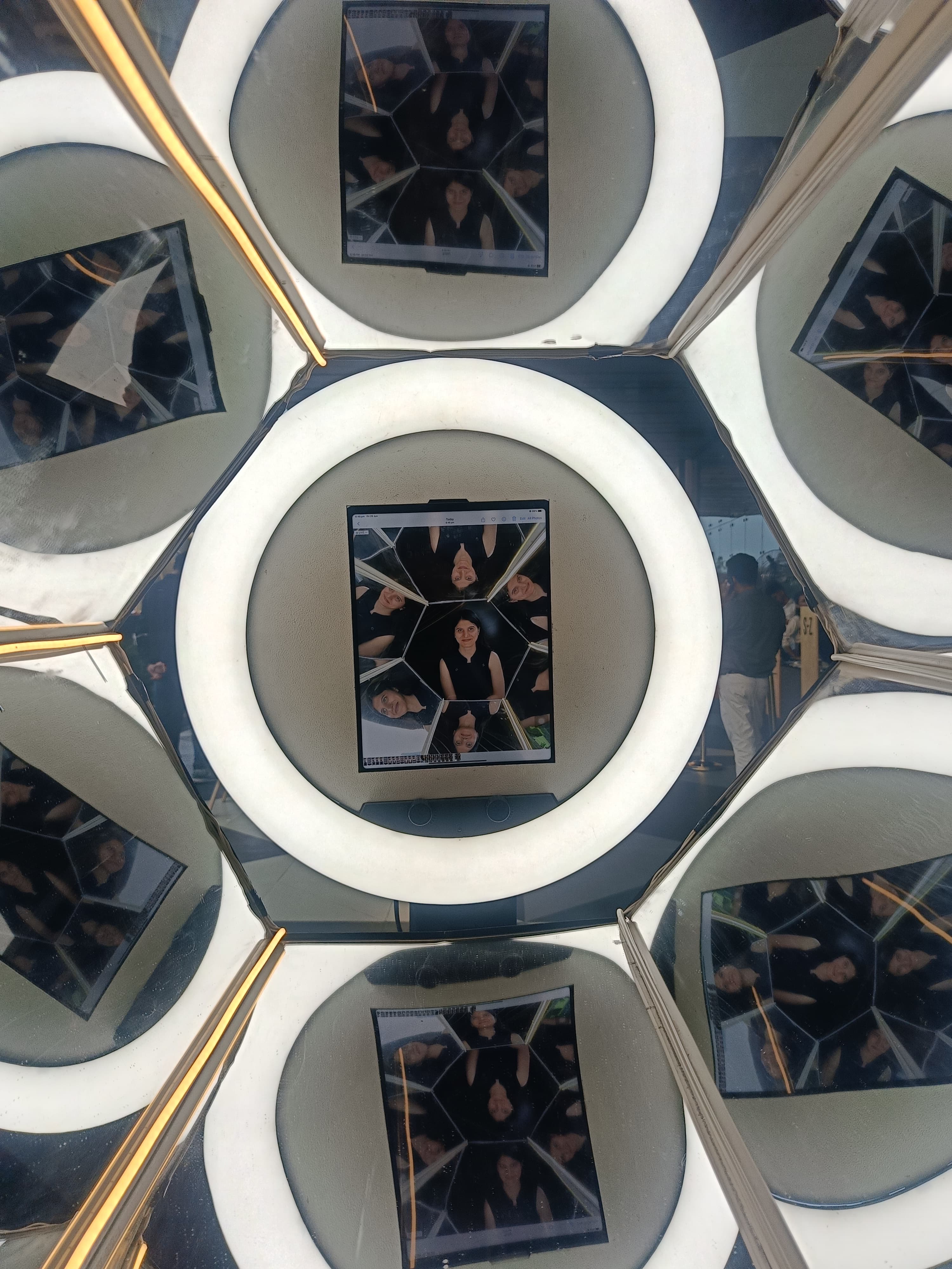 A kaleidoscope photobooth is an immersive mirrored tunnel that captures guests in mesmerizing, multi-angle reflections enhanced by dynamic lighting. It can create still photos, animated GIFs, or short loop videos—and supports immediate digital sharing and branding/custom visuals. Typically portable and space-conscious, it's ideal for social events, festivals, corporate activations, weddings, and more.